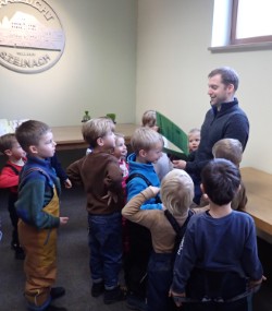 Dabei kristallisierten sich unter den Kindern auch echte „Kenner“ heraus, die einen Sieben-Schar-Pflug auf Anhieb erkannten! Auch die Gewächshäuser wurden zum Lernort der Waldkinder. Da-bei erfuhren sie vieles über Saatgutgewinnung, Reinigung sowie Lagerung der Sämereien. Mit viel Zeit und kindgemäßen Veranschaulichungen erhielten die Rumpelwichte eine be-eindruckende Führung über das gesamte Gelände und zu jeder aufkommenden Frage gab es eine ausführliche Antwort! Nach all den Eindrücken war der Geist gesättigt, doch auch das leibliche Wohl kam an diesem Tag nicht zu kurz: Bei einem großartigen Buffet im Konferenz-Saal konnten sich die kleinen Erkunder noch ganz nach Gusto reichlich stärken.