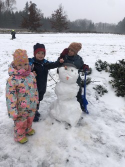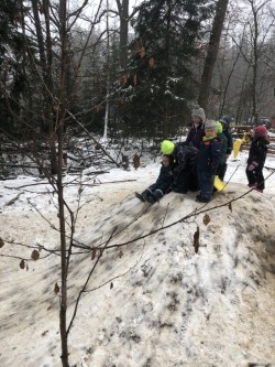 Im Kinderhaus Sankt Ursula gehört das Freispiel im Garten bei jedem Wetter fest zum Tagesprogramm. So können die Kinder die Jahreszeiten mit allen Sinnen erleben. Im Herbst laden die bunten Blätter zu diversen Spielen ein. Die unmittelbar darauffolgende, „matschigere“ Zeit ist für die Kinder ein Highlight – allerdings weniger für Sauberkeit liebende Eltern . Nach Herzenslust wurde ab November gematscht, gewühlt, ge-schmiert, gekocht, geformt und gebaut. Mit dem Winter veränderte der weiße Schnee nochmals die Natur. Kälte und Stille waren draußen zu verspüren. Aus Matschkugeln wurden Schneebälle. Es gab nicht nur einen Schneemann, es wurden ganze Schneefamilien gebaut! Die Kinder konnten Schlitten fahren und Schneeballschlachten gewinnen oder aber verlieren. Für die Mutigeren gab es heuer auch oft Eisflächen, auf die man sich wagen konnte.